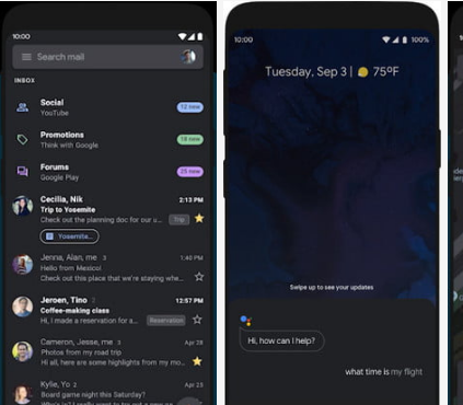 Google Maps和Google Assistant在某种程度上已经支持暗模式功能,但是,尚未完全提供支持。具有完全支持的更新可能很快就会向用户推出。最初,Gmail也为暗模式添加了一些基本支持。例如,当Android 10的系统范围内的黑暗模式开启时,Gmail小部件可以在黑暗模式下工作,如果您在黑暗模式下打开Gmail应用程序,则会看到一个黑暗的启动屏幕。现在,整个应用程序将允许使用深色主题。